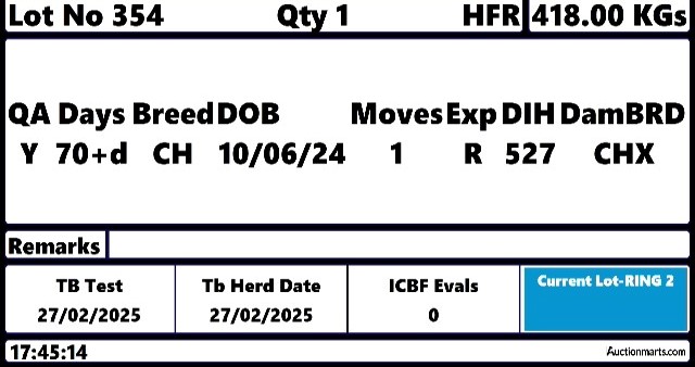 Monday 24 Nov, Ring 1, Calf Sale Incl Runners & Weanling Sale, Intake 8am, Start 10:30