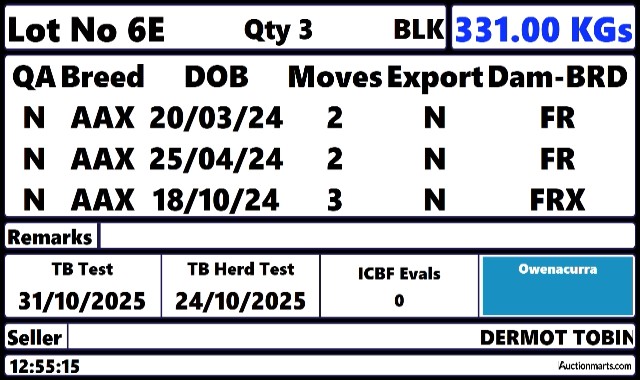 Tuesday 25 Nov, Ring 2, HEIFER SALE, Intake from 7.00am , Start 13:30,