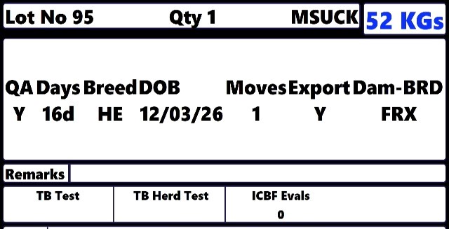 Saturday 4 Apr, Ring 1, SHEEP CALF & CATTLE, Intake 9am, Start 11:00