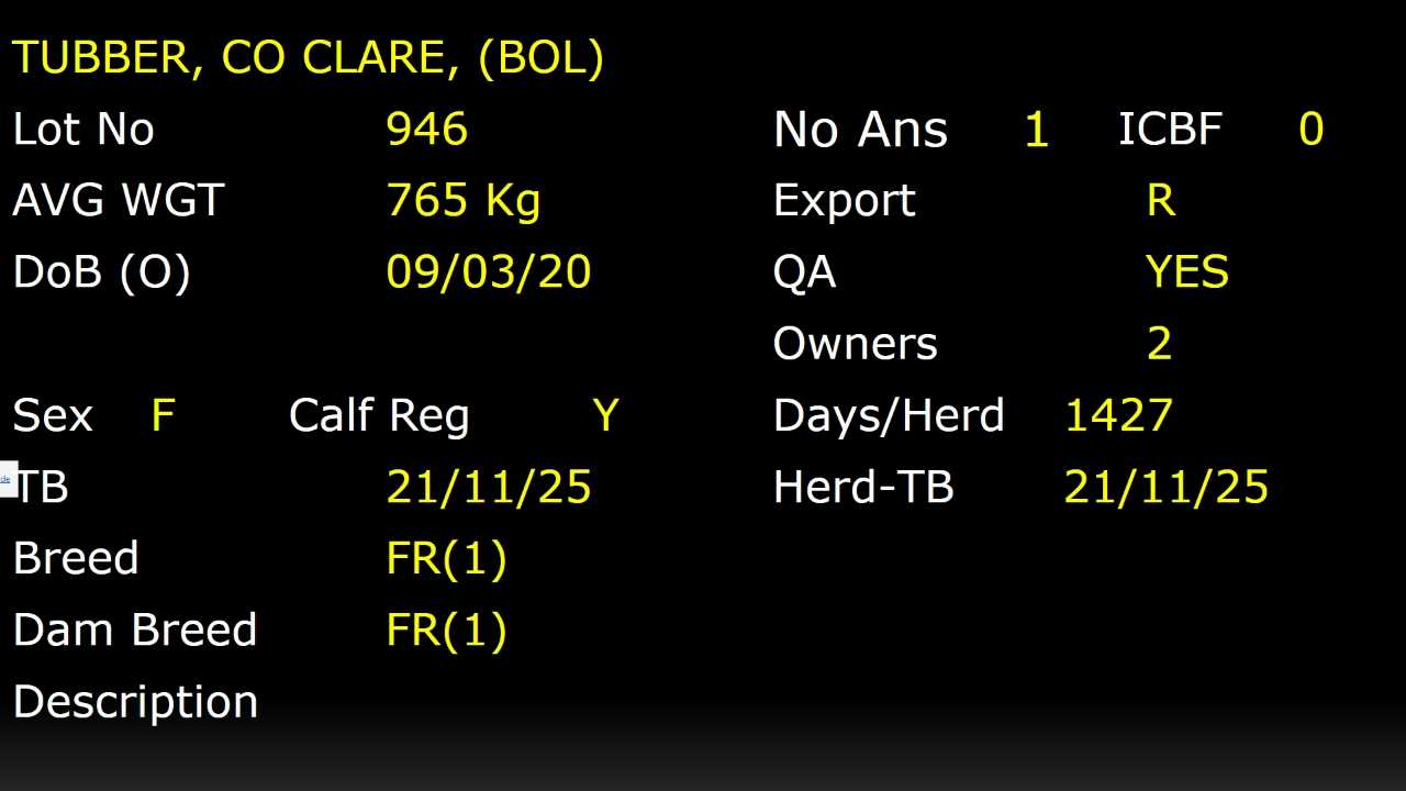 Thursday 29 Jan, Ring 1, HFRS +SPECIAL SALE OF IN CALF HFRS/ COWS, Intake 1.30 TO 4PM, Viewing 4 TO 5.30PM, Start 17:30,