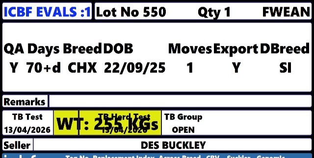 Friday 24 Apr, Ring 1, Calves & Weanlings every Friday @6.30pm, Intake from 3pm, Start 18:30,