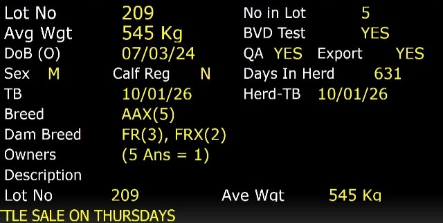 Thursday 29 Jan, Ring 1, General cattle Sale incl dairy, Intake 9.30 to 12.00, Viewing 9.30 to 12.00, Start 12:00