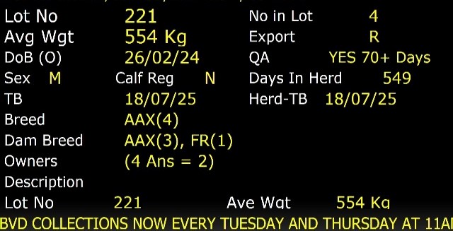 Thursday 23 Apr, Ring 1, General cattle Sale (incl weanlings), Intake 9.30 to 12.00, Viewing 9.30 to 12.00, Start 12:00