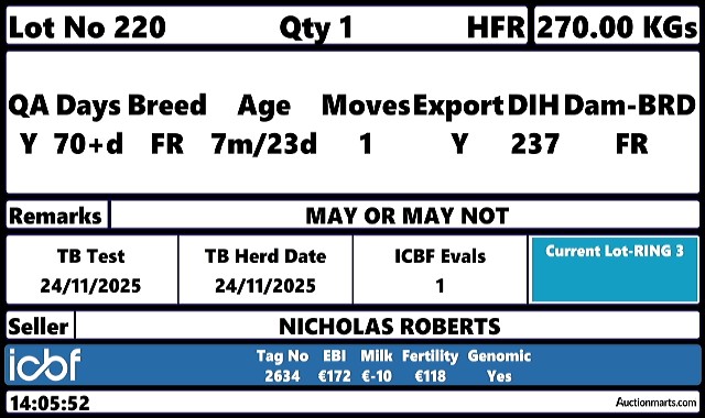 Saturday 13 Dec, Ring 3, CALF SALE, Intake 7.00 AM, Viewing 9.30 AM, Start 10:00